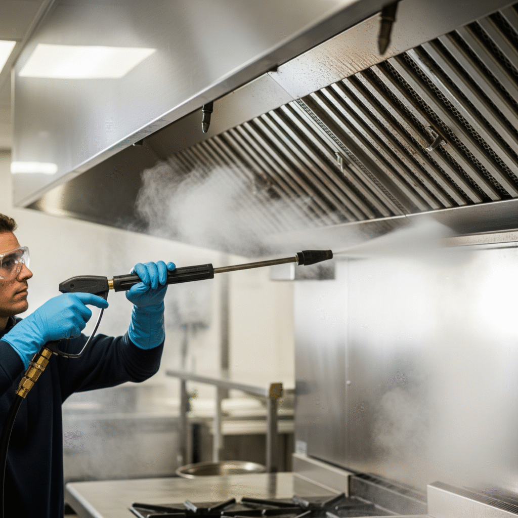 Many business owners attempt degreasers, scraping, or pressure washing to clean their hoods. While these methods may remove surface grease, they are less effective on hardened, baked-on buildup. Steam cleaning, on the other hand, provides a superior solution.